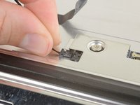 Grasp the small tab at the end of one of the bottom edge display adhesive strips and pull the adhesive toward the top of the iMac to remove it.