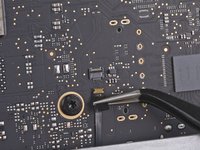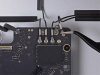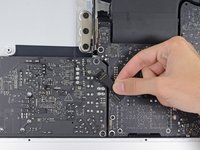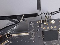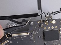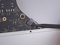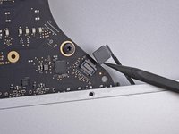 Unplug the left speaker cable by pulling it straight up out of its socket on the logic board.