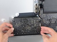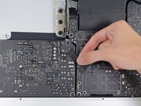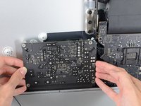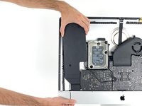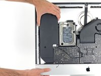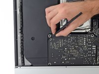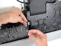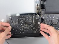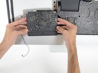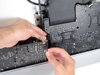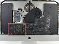 Lift the logic board straight up and out of the iMac. Be careful not to snag it on any of the screw posts attached to the inside of the rear case.