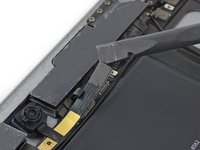 Use the flat end of a spudger to pry up the adhesive securing the Facetime camera ribbon cable to the headphone jack ribbon cable underneath.