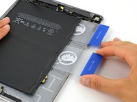 Slide the left-hand opening pick along the bottom edge of the display, then remove it from the bottom right corner of the iPad.