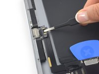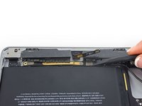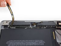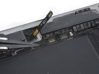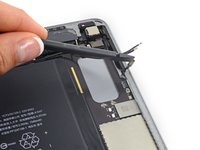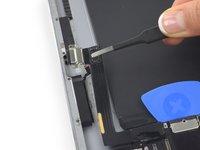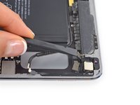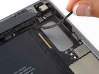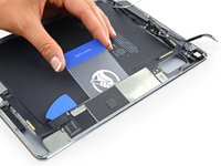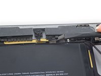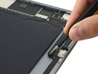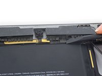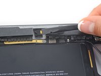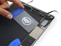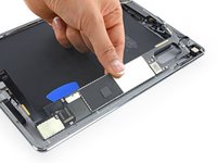 Slide a battery isolation pick underneath the battery connector area of the logic board, and leave it in place while you work.