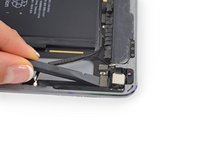 Use tweezers to peel up the rightmost grounding tape attaching the antennas to the logic board.