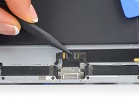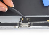 Use a spudger to flip up the retaining flap on the left speaker's ZIF connector.