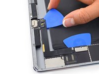 Slide the left-hand opening pick along the bottom edge of the display, then remove it from the bottom right corner of the iPad.