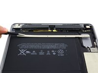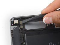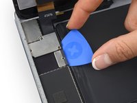 Slide a battery isolation pick underneath the battery connector area of the logic board, and leave it in place while you work.