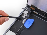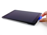 Slide the left-hand opening pick along the bottom edge of the display, then remove it from the bottom right corner of the iPad.