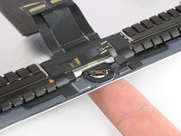 Use the tip of a spudger, an opening tool, or your fingernail to flip up the small, hinged locking flap on the home button cable ZIF connector.