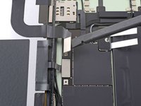Bend the cable to the right so the two Wi-Fi and cellular antenna cables underneath are accessible.