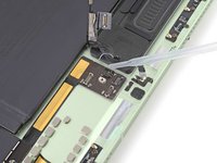 Use the pointed end of a spudger to disconnect the top left Wi-Fi antenna cable.