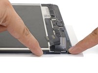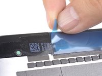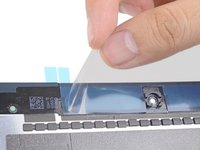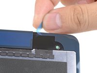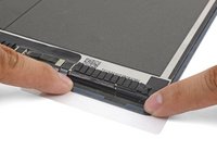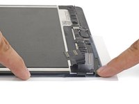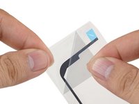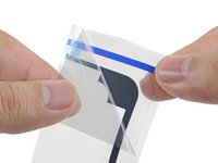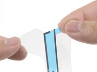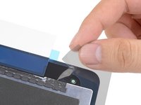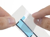 Starting from one corner, lay the adhesive strip onto the display assembly and press in place.