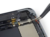 Use a set of tweezers to peel up the small piece of tape covering the headphone jack cable connector.