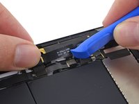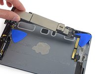 Use the tip of a spudger to pry the antenna cable tape up from the rear case of the iPad.