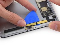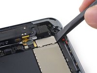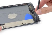 Insert the tip of a spudger into the gap between the left speaker and the bottom left side of the rear case.