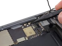 Use the flat end of a spudger to loosen the foam adhesive securing the Wi-Fi antenna to the left speaker.