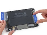Place a second opening pick alongside the first and slide the pick down along the edge of the iPad, releasing the adhesive as you go.
