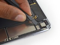 Use the flat tip of a spudger to disconnect the battery connector from its socket on the logic board.