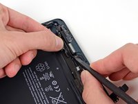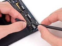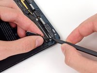 Use the tip of a spudger to peel back the small piece of tape covering both antenna cables located near the bottom right corner of the iPad.