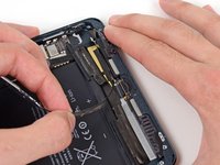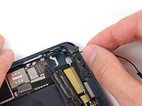 With the tip of a spudger, peel up the larger piece of tape covering both antenna cables near the bottom of the rear case.