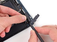 Use a plastic opening tool to gently pry the battery connector up from its socket on the logic board.