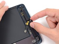 Use a pair of tweezers to peel up and remove the small piece of tape covering the front-facing camera cable connector.
