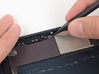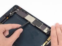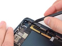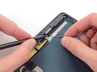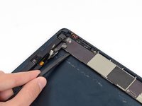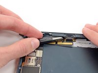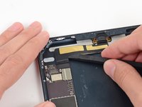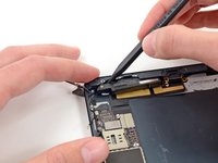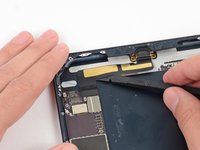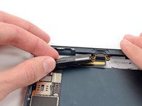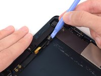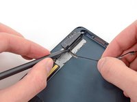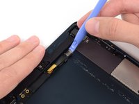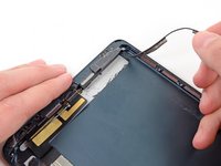 Use the tip of a spudger to remove the small piece of tape securing the antenna cable in the bottom right corner of the iPad.