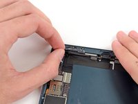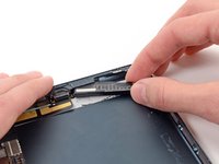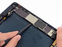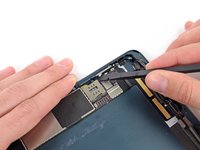 Use the tip of a spudger to peel back the small piece of tape covering both antenna cables on the bottom right side of the iPad.