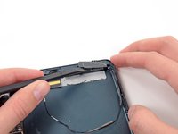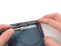 Use the flat end of a spudger to loosen the foam adhesive securing the lower left antenna to the left speaker.