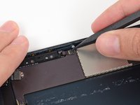 Gently insert the flat end of a spudger underneath the logic board nearest the front-facing camera. Slowly pry to free the corner from adhesive.