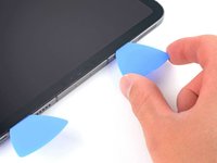 Insert a new opening pick to the left of the USB-C port.