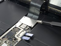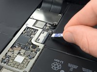 Lift the logic board EMI shield from the edge nearest the top of the iPad.