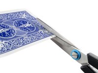 Use a piar of scissors to cut two 6 mm x 20 mm strips of a playing card to use as a battery blocker.