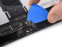 Carefully slide an opening pick underneath the home button cable to separate it from the screen.