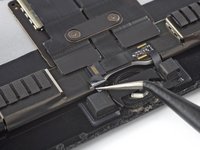 Use the point of a spudger to open the ZIF connector that secures the cable by bringing its flap in an upright position.