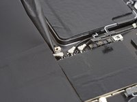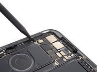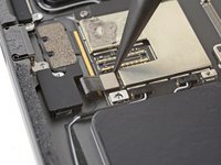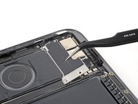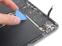 Use the point of your spudger to pry up and disconnect the microphone and Apple Pencil charger press connectors.
