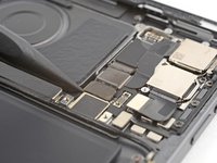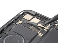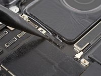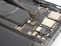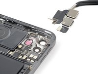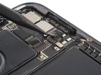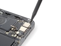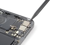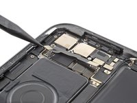 Use the point of your spudger to pry up and disconnect the LiDAR sensor and ultrawide camera from the logic board.