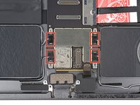 Use your Phillips screwdriver to remove the four 1.8 mm screws securing the logic board.