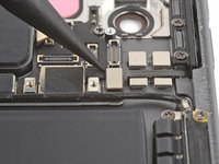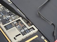 Peel the second strip of tape securing the upper antenna cable to the logic board near the rear camera cutouts.
