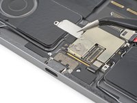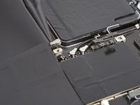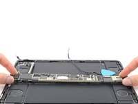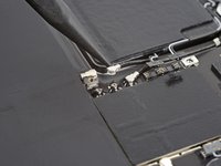 Apply a heated iOpener to the lower antenna cable, located along the left edge of the logic board, for two minutes.