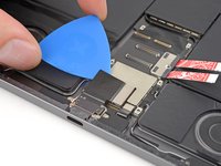 Insert an opening pick between the bottom edge of the logic board and the Smart Connector.