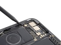 Use the point of your spudger to pry up and disconnect the upper antenna cable from the right edge of the logic board.