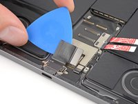 Use the point of your spudger to pry up and disconnect the USB-C port press connector from the logic board.