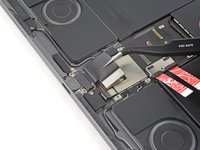 Use your Phillips screwdriver to remove the 2.0 mm screw securing the lower left speaker cable shield.