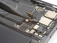 Use your Phillips screwdriver to remove the two 1.6 mm-long screws securing the USB-C port.