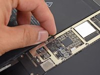 Lift the logic board EMI shield from the edge nearest the top of the iPad.