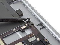Once you swing the logic board completely over its flex cable, use a piece of tape to secure the logic board out of the way of the battery.