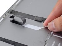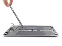 Insert a pick in the upper left corner of the iPad to prevent the adhesive from resealing.