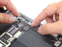 Use your fingers or tweezers to lift and peel up the the two antenna cables from the iPad frame.