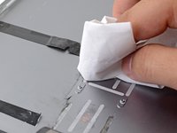 Remove all adhesive residue from the iPad frame. Use isopropyl alcohol and a spudger to scrape off any adhesive chunks. Wipe away the adhesive residue with a lint-free cloth.