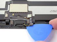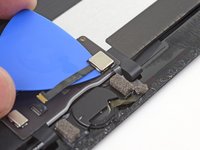 Starting from the ZIF connector, use an opening pick to separate the home button cable from the adhesive holding it in place. Stop when you reach the home button.